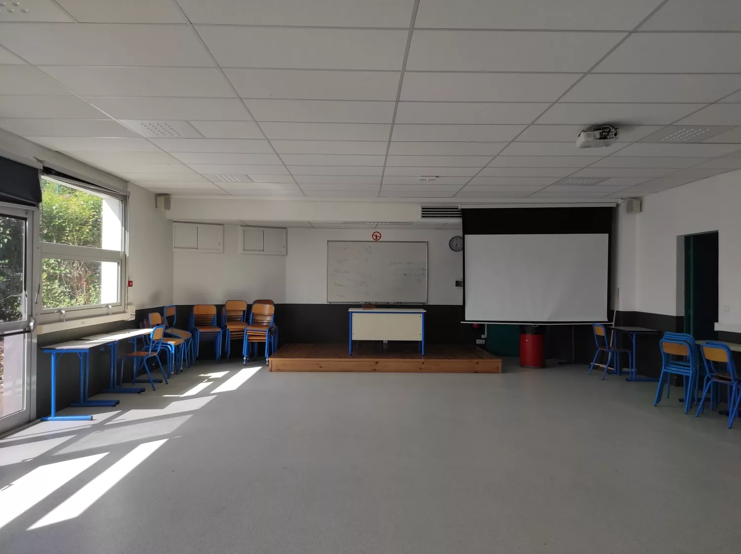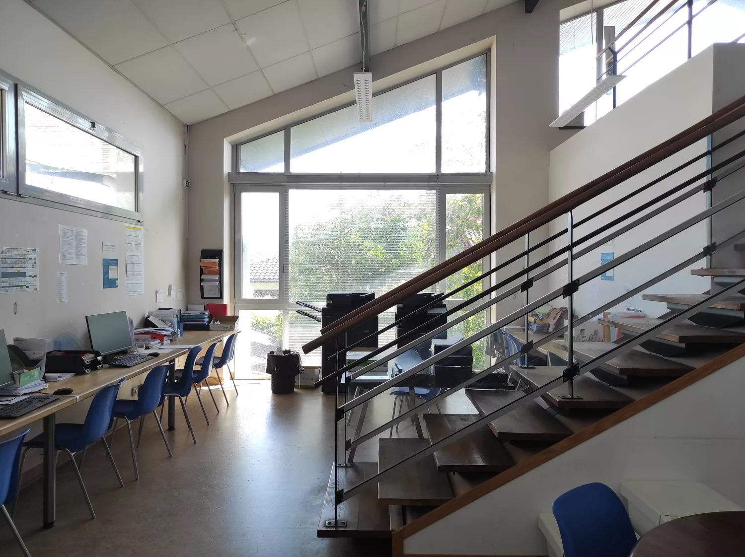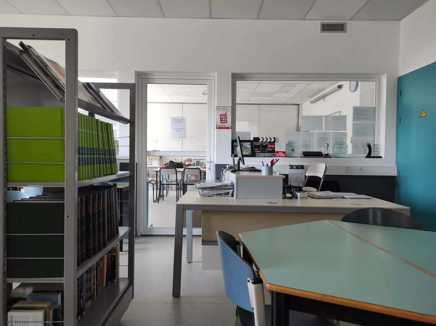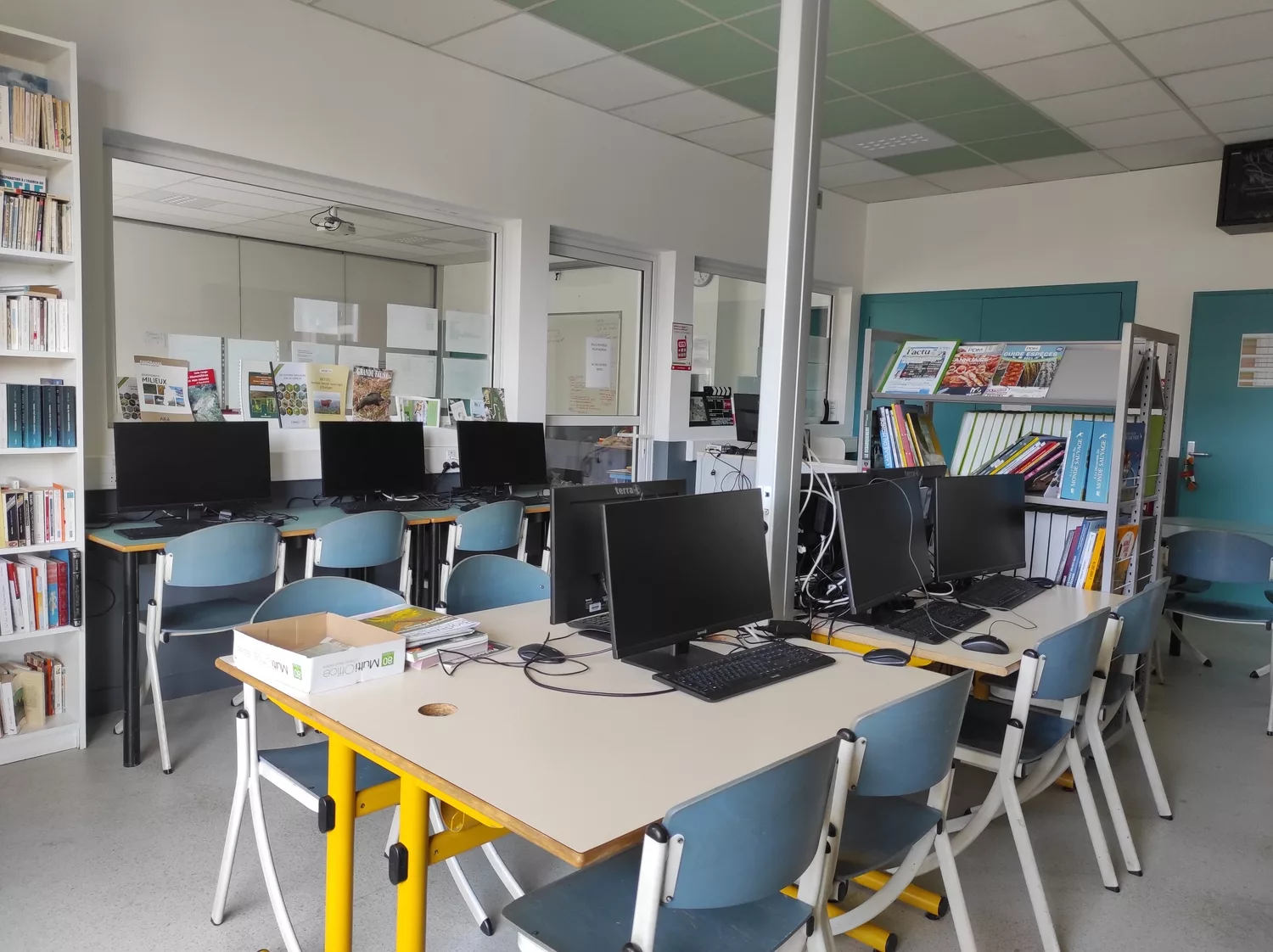 S’étant développé au cours du temps, le lycée agricole Saint Christophe a dû s’adapter à la croissance de l’équipe pédagogique. L’intervention a consisté à intervertir salle des professeurs et CDI, en réadaptant les espaces : la nouvelle salle des professeurs a été reconfigurée pour y intégrer une cuisine et des sanitaires, et le nouveau CDI a pu bénéficier d’ouvertures permettant une surveillance de la salle d’étude. Dans un souci de polyvalence, une cloison amovible est venue diviser cet espace, permettant une meilleure adaptation aux usages.